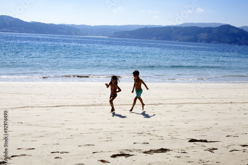 Niños jugando en playa solitaria