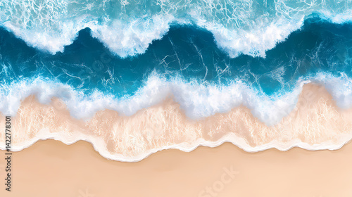 Ocean beach wave. abstract background of beautiful blue waves crashing on empty beach. Thoughtwash Swell. Illustration