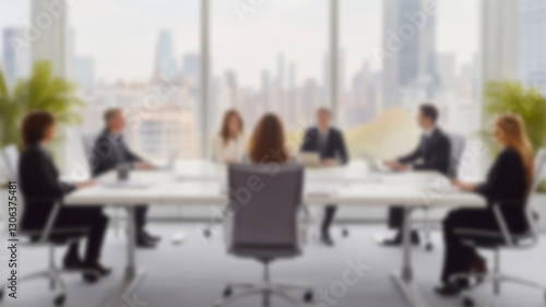 Office blur meeting room blurred background of blurry boardroom presentation with work desk for business discussion. AI Generated Images