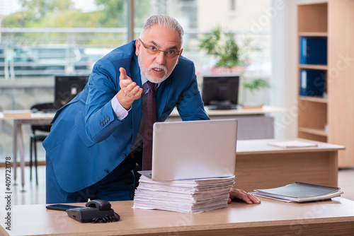 Old male boss employee working in the office