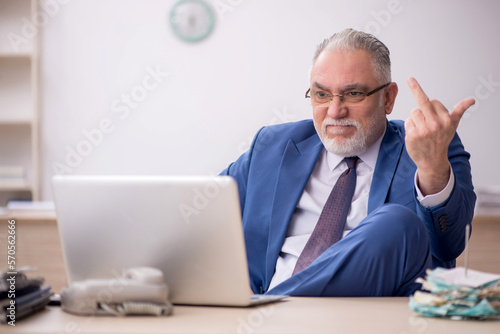 Old male employee working in the office