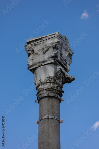 Old plaster sculptures and bas-reliefs, wall texture and patterns. Elements of architectural decorations of buildings. On the streets in Istanbul, public places.