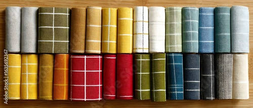 Old-school textile swatch grid with soft primary tones