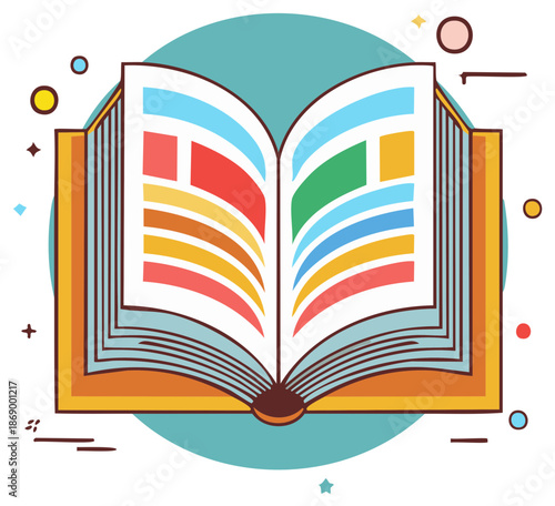 Opened Book Vector Illustration with Colorful Pages School Education Concept