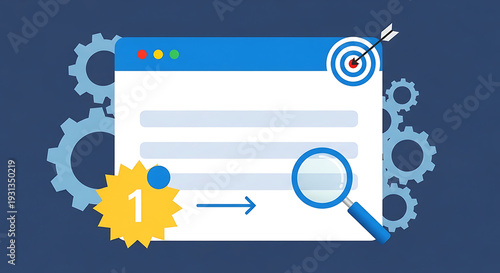 Optimizing search results on a digital interface with gears and magnifying glass
