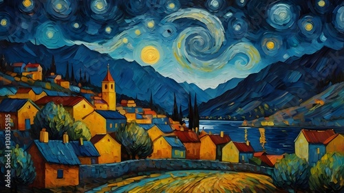 painting of the house in the mountains