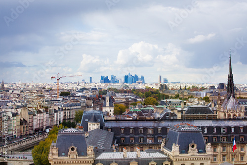 Panorama of Paris cite island and La Defense
