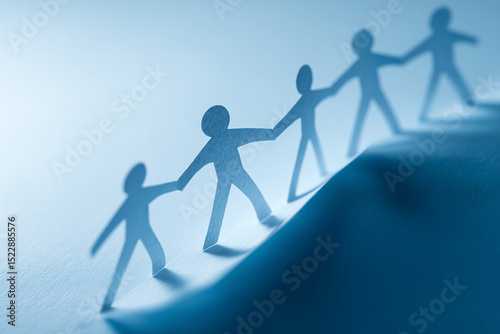 Paper chain people helping each other succeed