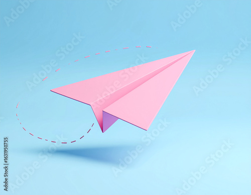 Paper plane pink fly blue background travel art