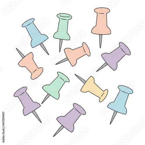 Pastel Colored Thumbtacks on White Background