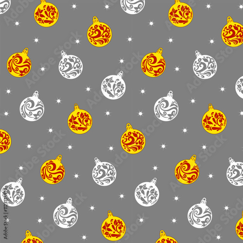 Pattern of Christmas tree balls.Vector seamless pattern of multicolored Christmas balls on a gray background.