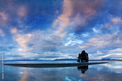 Peaceful view of the Atlantic ocean at dawn. Location place Hvitserkur, Vatnsnes peninsula, Iceland, Europe. Scenic image of beautiful nature landscape. Perfect scene. Discover the beauty of earth.