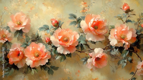 Peach Roses on Beige Wall Art