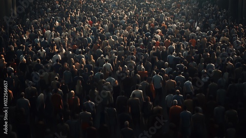 People Walking in a Busy Crowd on Urban Streets - A Dynamic Scene of Pedestrian Movement, City Life, Hustle and Bustle in a Crowded Public Space