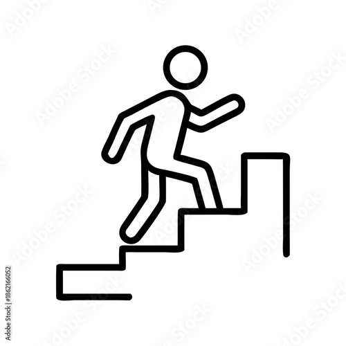 Person climbing stairs in a minimalist design with line art style