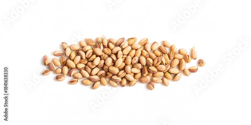 Pile of discarded pistachio shells on a white background used for recycling or waste management