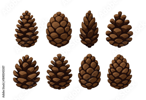 Pine cones collection, seeds, cones, trees, flat vector illustration