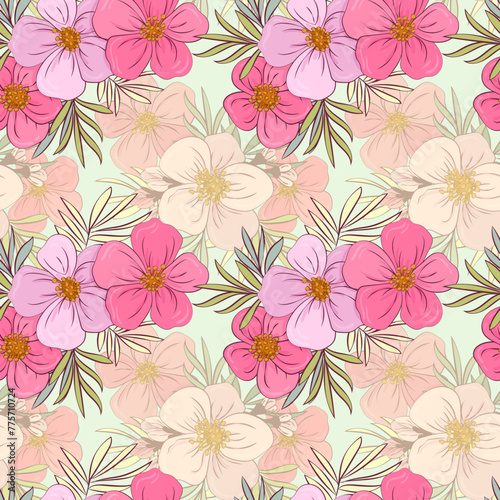pink flowers seamless texture .Modern Flowers background. Floral Seamless pattern. Pastel colors palette.EPS 10