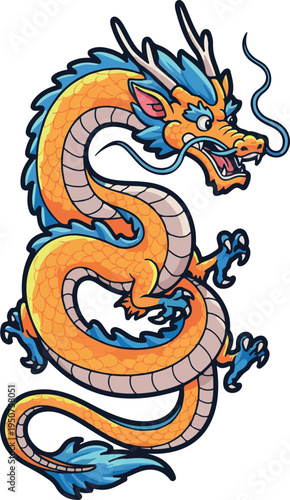 Pixel Art Dragon Icon Orange Blue Scales Asian Mythical Creature Vector