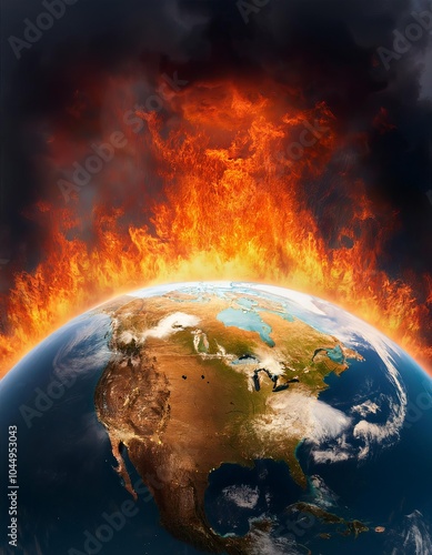 Planet earth burning showing north america global warming concept