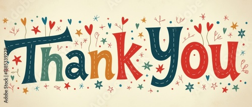 Playful "Thank You" typography with vibrant colors and whimsical designs
