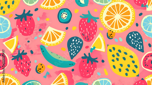 Playful Tropical Fruit Pattern Illustration