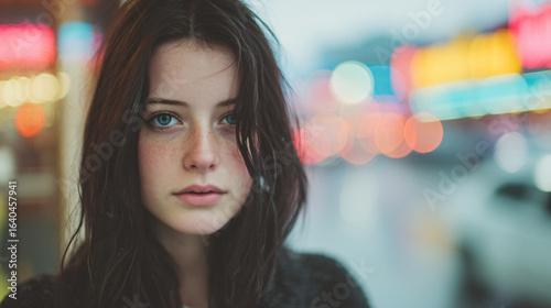 Portrait Model Urban Beauty Rain Street Darkhair Expression Closeup Fashion Lifestyle Bokeh Colors Youth Emotions Gaze Natural Makeup Reflection