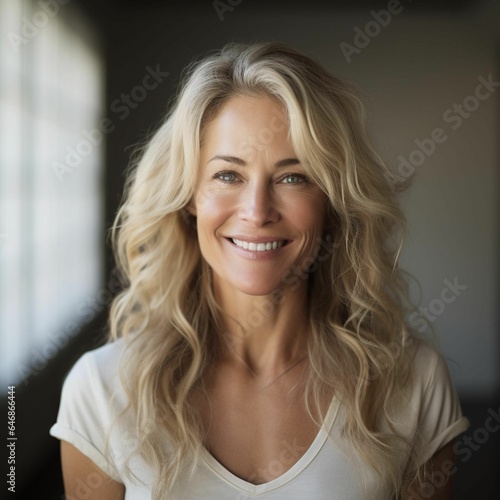 Portrait of a cheerful woman with blonde hair, Ai-generated.