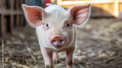 Portrait of a Curious Piglet in a Barnyard