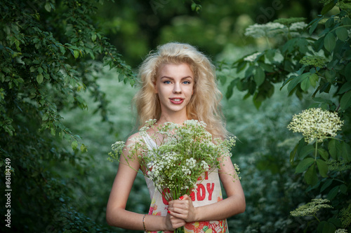 Portrait of a dreamy fairy young beautiful girl outdoor