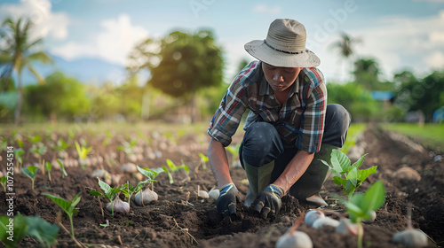 Portrait of Farmer Planting Seeds in Rich Farmland Soil