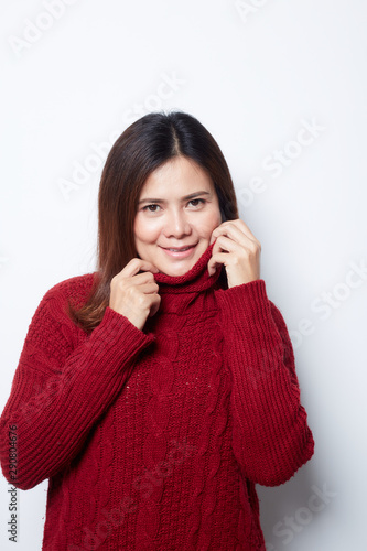 Portrait of woman in a red sweater