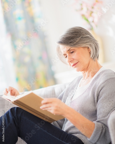 Portrait of woman reading on sofa