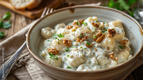 Potato gnocchi with creamy Gorgonzola sauce, toasted walnuts, and fresh parsley