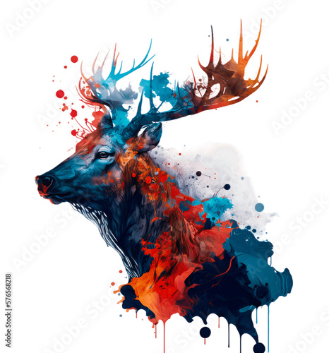 Potrait of a majestic deer in color splash vibrant