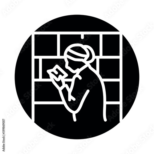 Praying in front of the wailing wall line color icon. Isolated vector element.