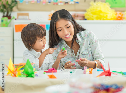 Preschooler and His Teacher Making Plasticine Animals
