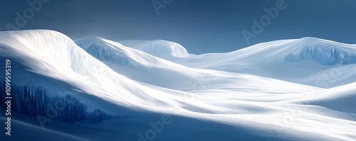 Pristine white mountain slopes with deep blue shadows and icy crystal formations ,
