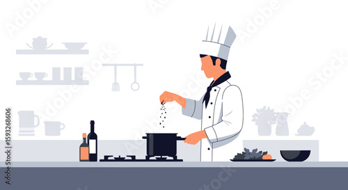 Professional Chef Cooking At Home Adding Spices To Pan On Stove Illustration
