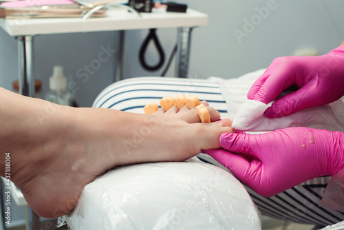 Professional pedicure in the beauty salon. Feet treatment. Beauty treatment for legs. Woman having pedicure at salon.