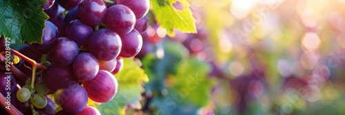 Purple and Red Grapes Among Green Leaves on the Vine Outdoor Grape Plants in Autumn Harvest with Selective Focus