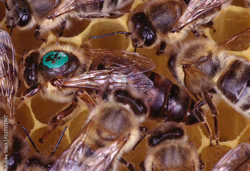 Queen Bee, Queen, Bee brood, Young bees, Thuringia, Germany, Europe
