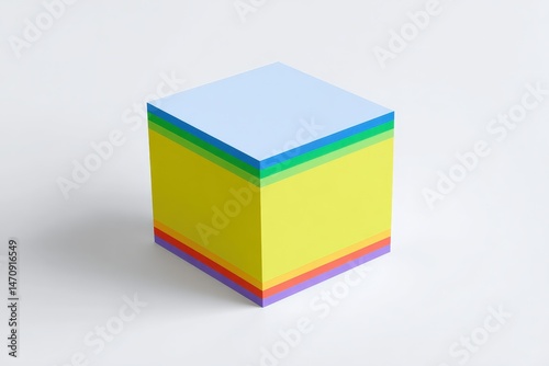 Rainbow layered cube on white background. Abstract art concept.