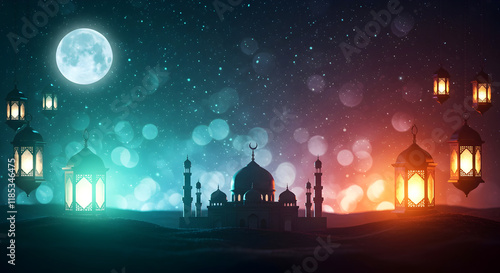 Ramadan background, abstract ramadan background, dreamy ramadan kareem background, moon and sky background, mosque background, ramadan advertising, promotion, wallpaper, 4k