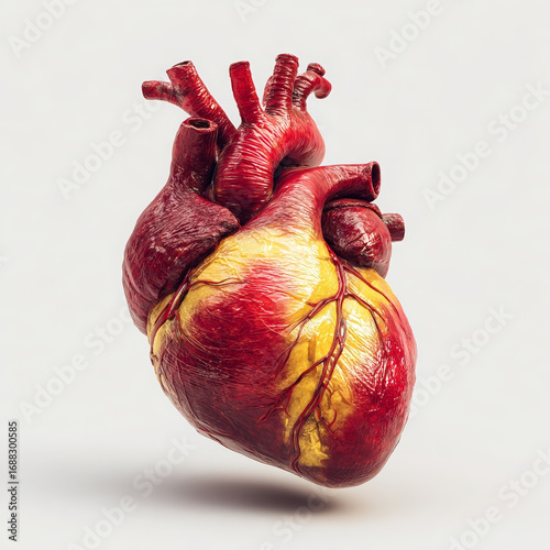 Realistic anatomical human heart model isolated on white background