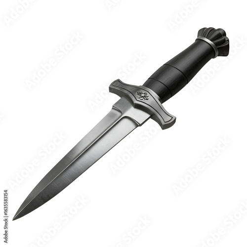 Realistic Dagger Illustration With Metallic Blade And Black Handle On Transparent Background