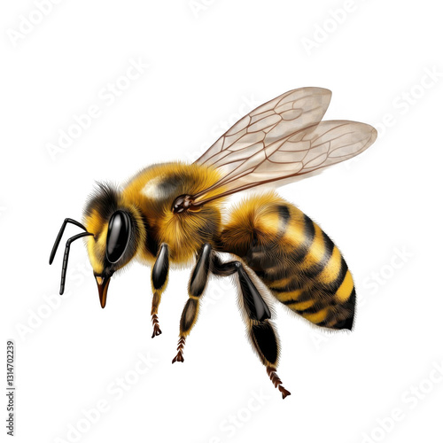 Realistic Detailed Illustration of a Bumblebee on a Transparent Background