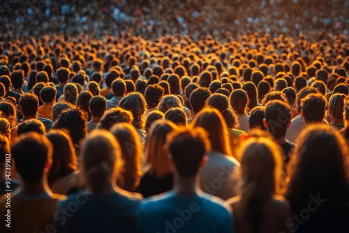 Rear view of large group of large group of people enjoying open air concert, Generative AI