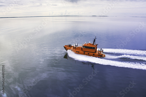 red pillot vessel over skyline