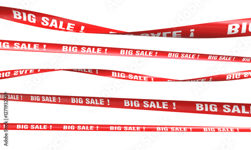 Red ribbons with big sale text waving on transparent background
